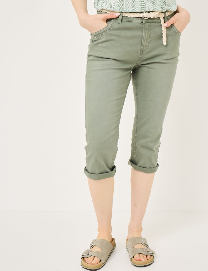 Pantaloni capri a 5 tasche con cintura intrecciata