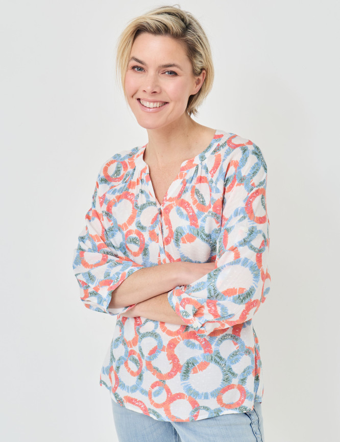 • Camicetta estiva meravigliosamente leggera con una colorata stampa all-over