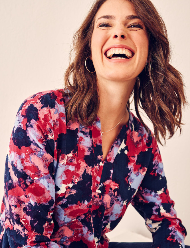 • Blusa dalla fantasia espressiva realizzata in viscosa sostenibile
