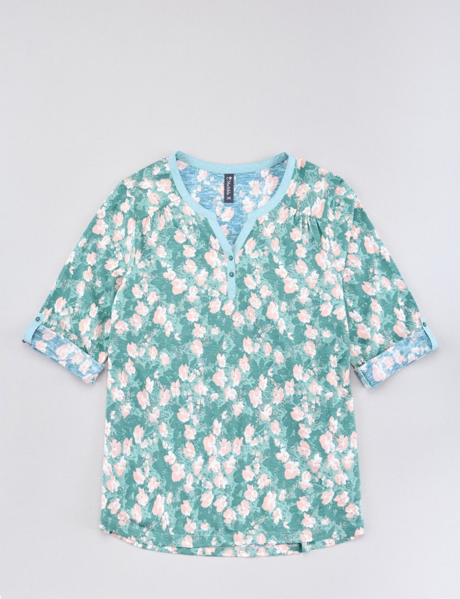 • Morbida maglietta con scollo Henley e abbottonatura corta