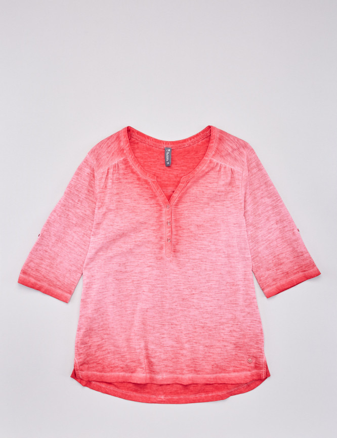 • Feminines Shirt mit Henley-Ausschnitt und kurzer Knopfleiste