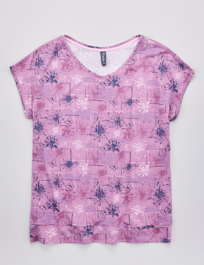 • Con fantasiosa stampa all-over e cuciture decorative a contrasto