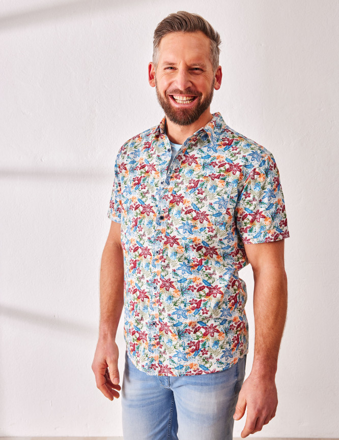 • Farbenfroh bedrucktes Hemd mit Kent-Kragen