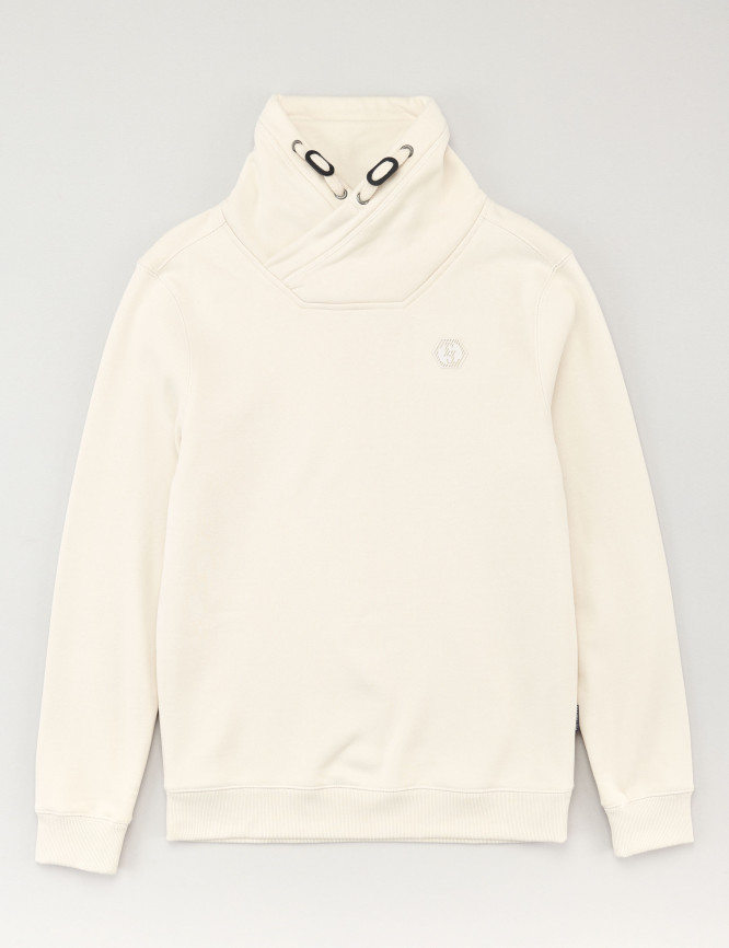 • Morbida felpa con collo alto alla moda con sovrapposizione e decorazione in corda