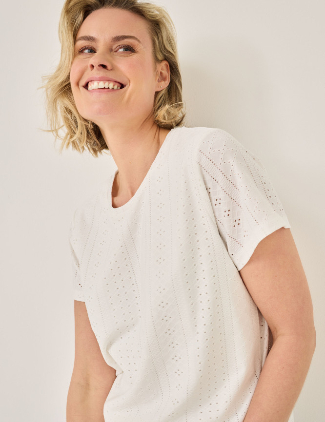 • Camicia girocollo con ricamo a occhiello