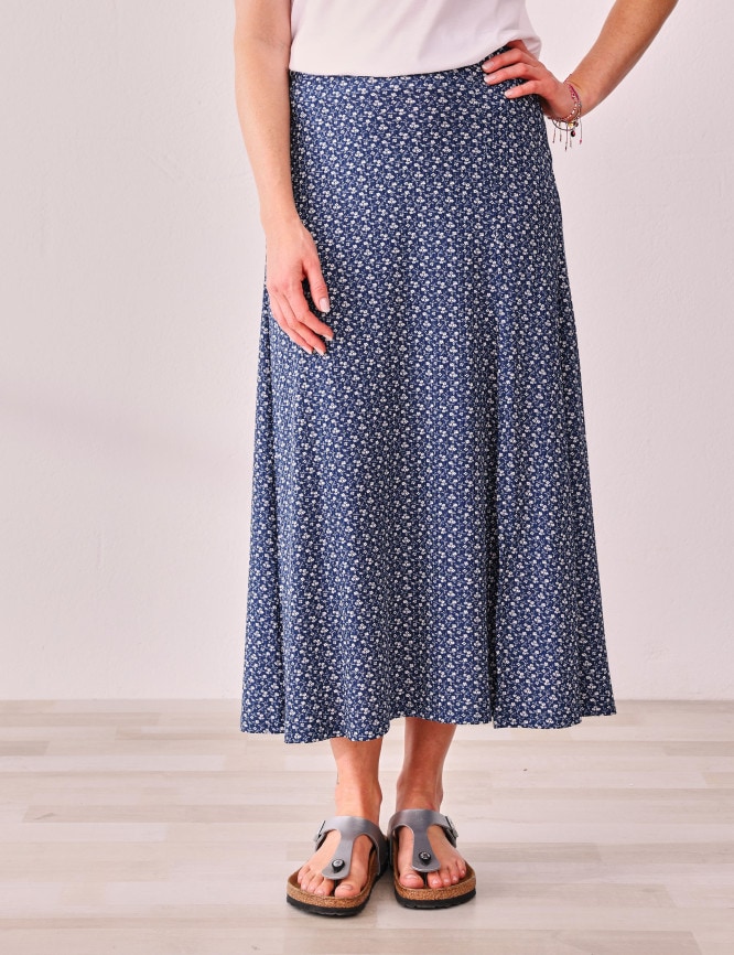 • Sommerlicher, gerader Rock mit vorderem Gehschlitz