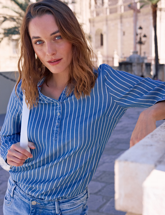 camicetta in denim con effetto a righe