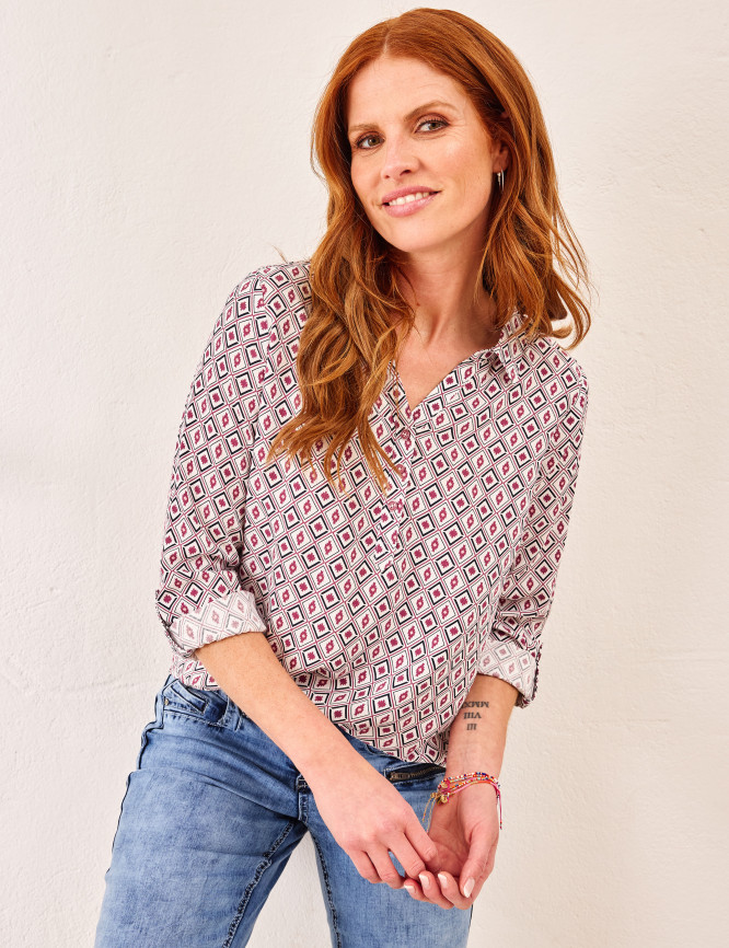 - Blusa pull-on con colletto a camicia in stile Henley