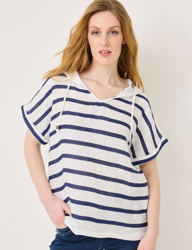 T-shirt casual in lino con cappuccio