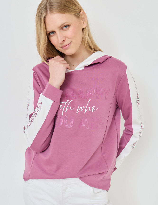- Maglietta con cappuccio a maniche lunghe in look bicolore