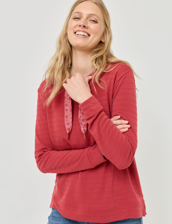 - Realizzata in morbido jersey double-face fluido con righe testurizzate