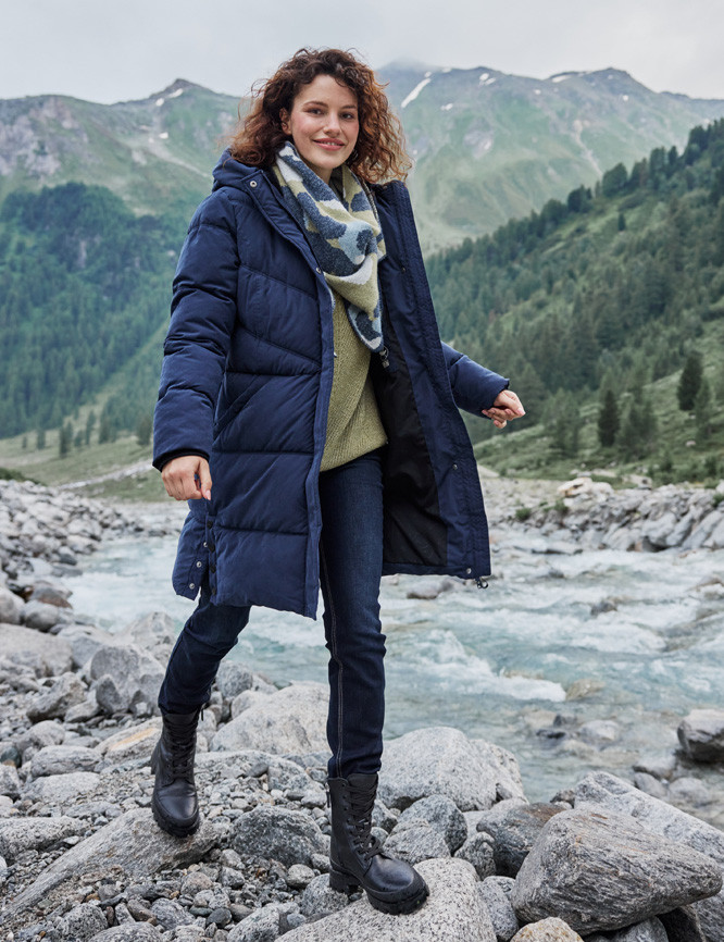 Cappotto lungo trapuntato, foderato in pile