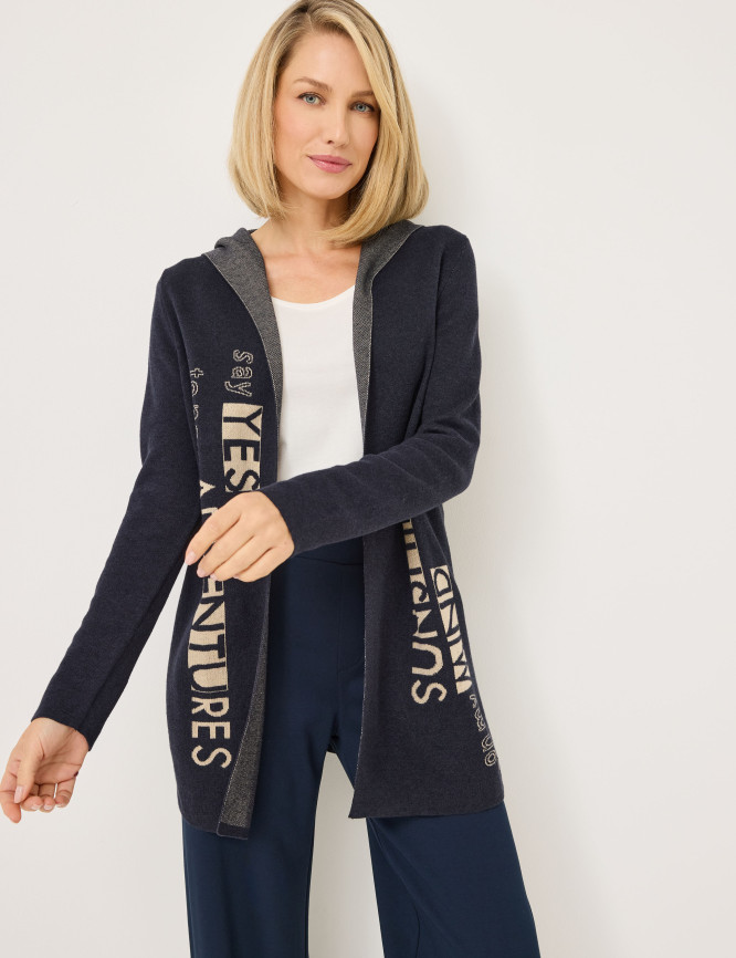 • Cardigan con cappuccio con interessanti scritte sul davanti e sul retro