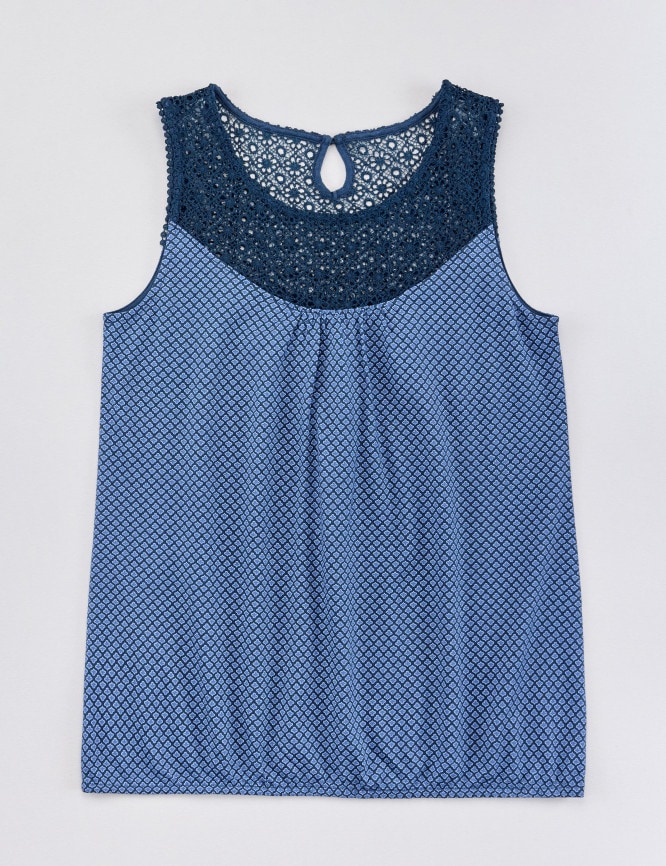 • Bedrucktes Top mit Spitzenpasse