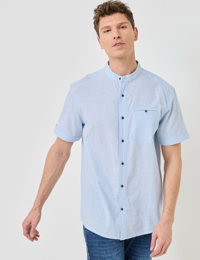 Camicia in misto lino con colletto alla coreana