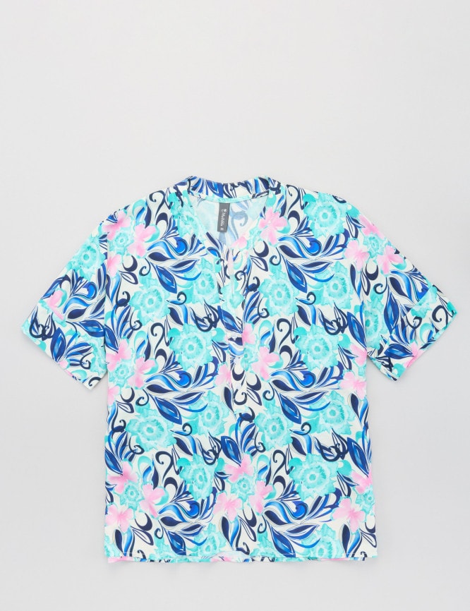• Scollo stile Henley, con colletto alto attaccato e abbottonatura accorciata