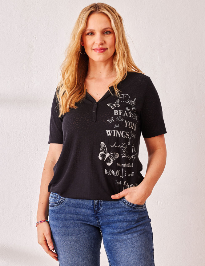 • Bequemer Henley-Ausschnitt und kurze Knopfleiste