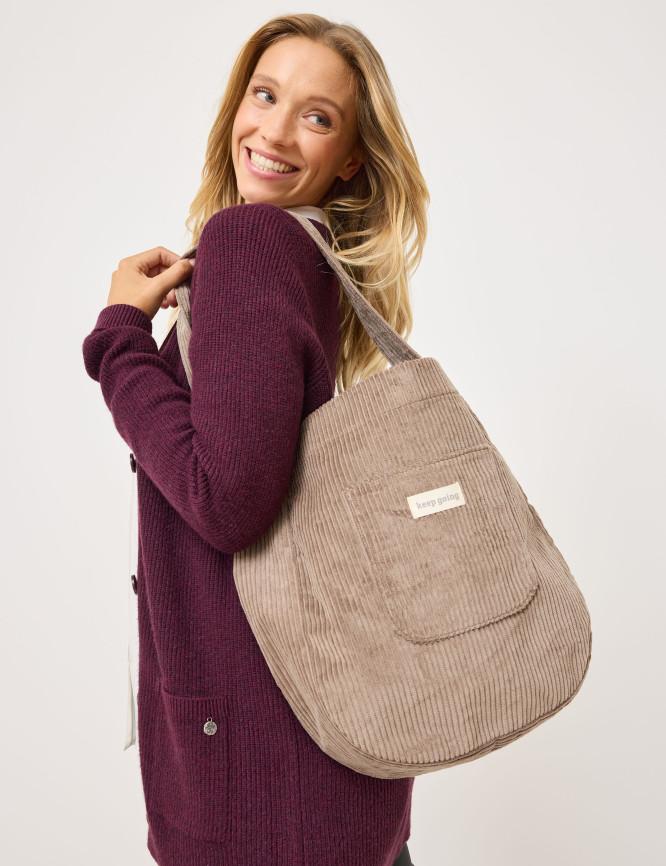 Borsa shopper media in velluto a coste