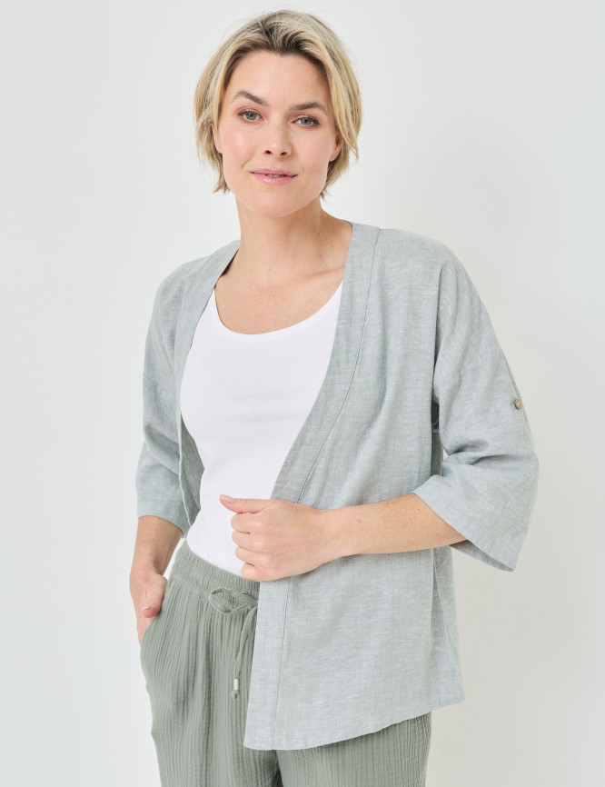 • Il comodo tessuto misto lino con viscosa è traspirante e presenta una sofisticata texture stropicciata