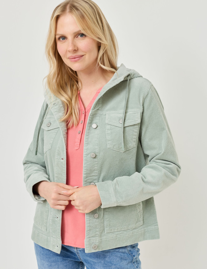 • Comodo giubbotto con cappuccio realizzato in tessuto di velluto a coste super confortevole e leggermente elasticizzato