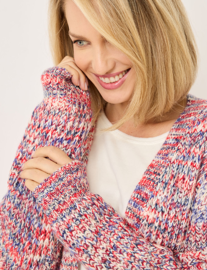 Cardigan aperto realizzato in filato fantasia