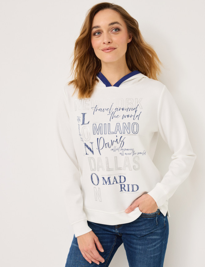 maglietta con cappuccio e stampa frontale