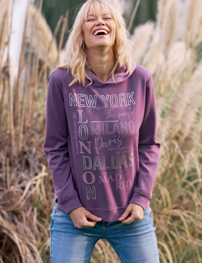 maglietta con cappuccio e stampa frontale
