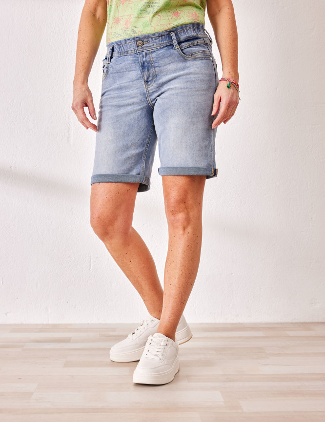 Shorts in denim con cintura a punto smock