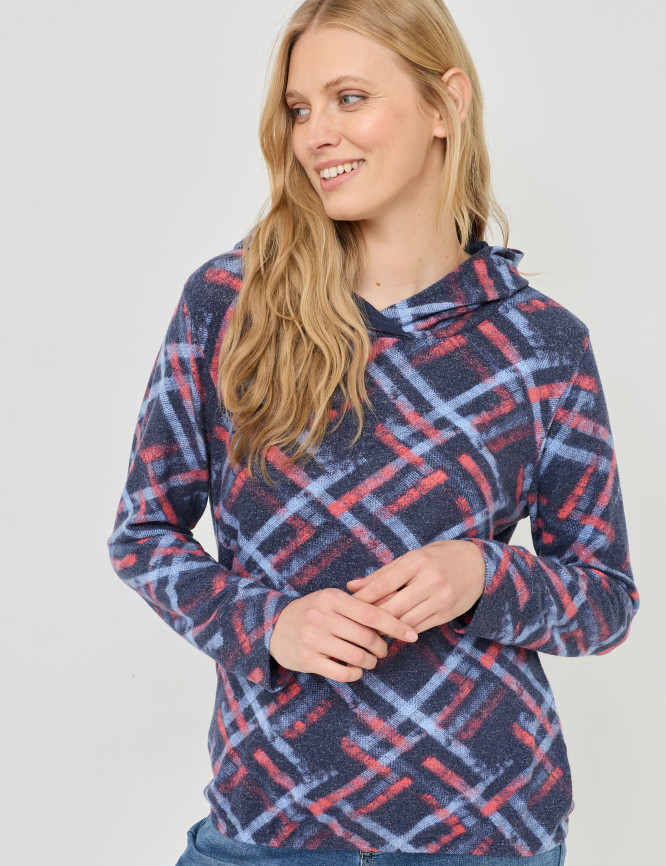 Morbida maglietta con cappuccio e motivo a quadri