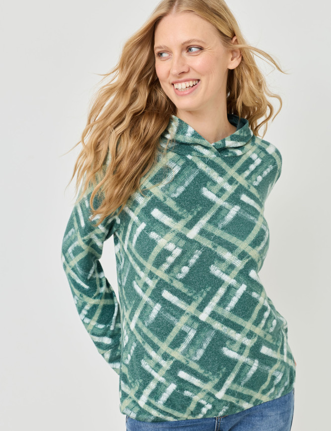 Morbida maglietta con cappuccio e motivo a quadri