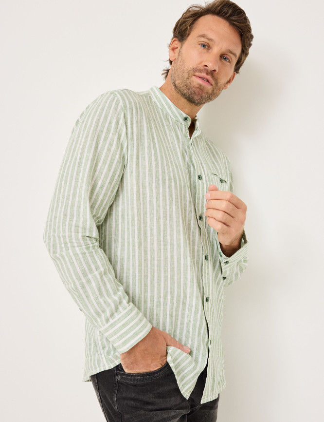 camicia con collo alto in lino
