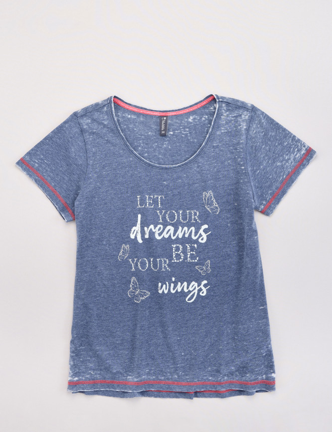 • Con stampa frontale decorativa e cuciture decorative a contrasto