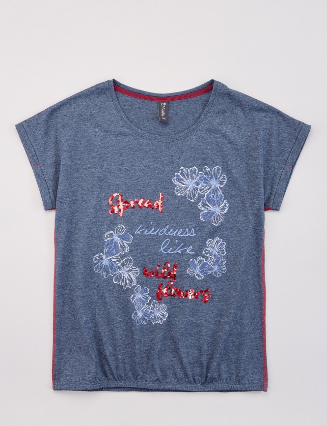 • Un vero colpo d'occhio con stampa frontale scintillante, paillettes scintillanti e cuciture a contrasto