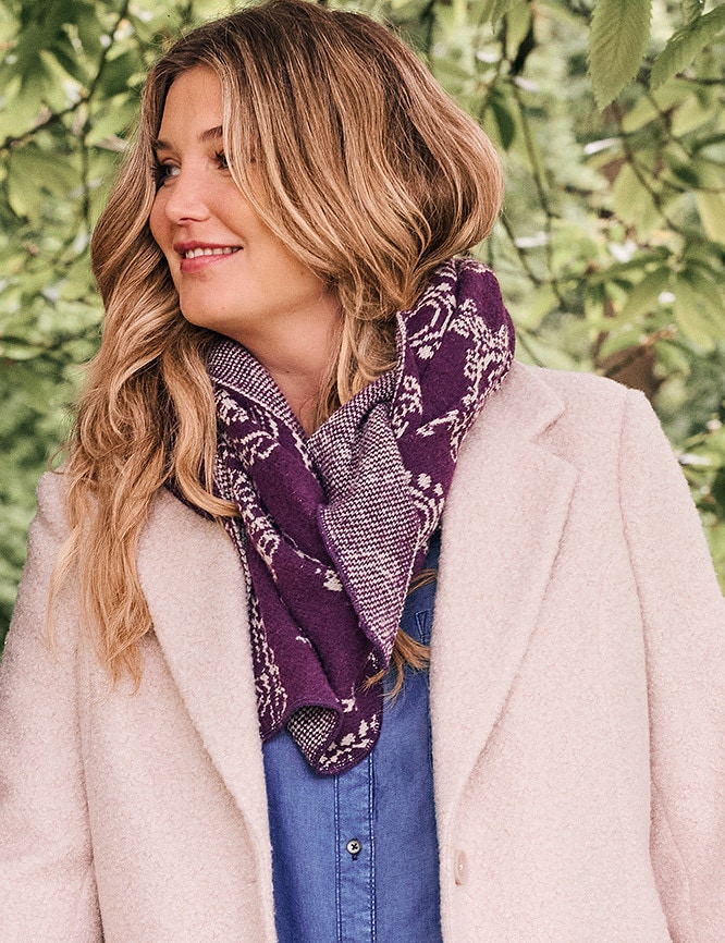 - Sciarpa lavorata a maglia con motivi: meravigliosamente morbida e coccolosa