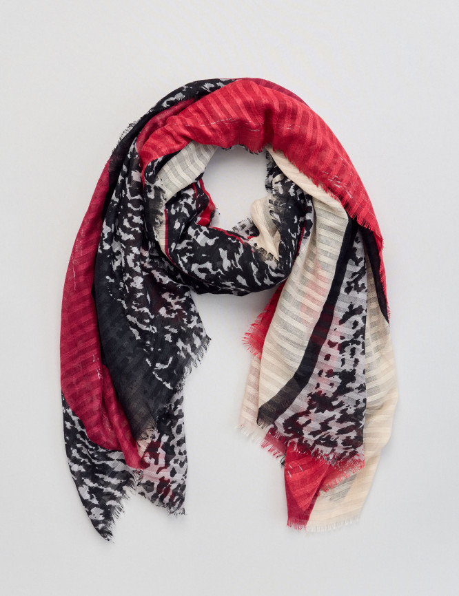 • Sciarpa con strisce tessute alla moda e stampa astratta